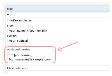 Contact Form 7 Cc and Bcc Posted on May 12, 2014 by Chandra Oemaryadi http://contactform7.com/adding-cc-bcc-and-other-mail-headers/