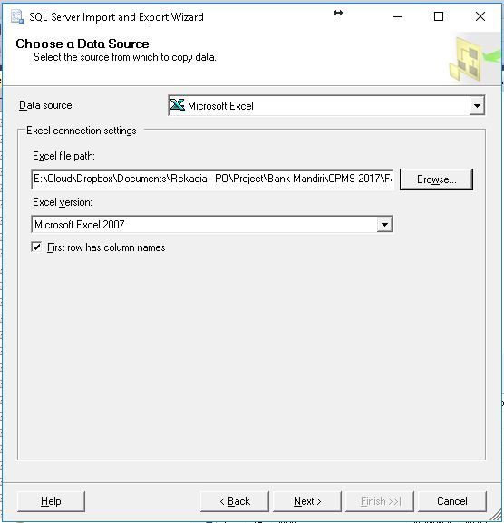 Kita dapat meng-import / meng-input data ke SQL server dari file excel. Langkahnya sbb: