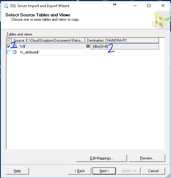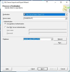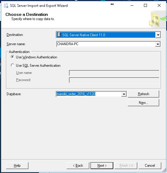 3. Pilih database yang akan di-import / destination