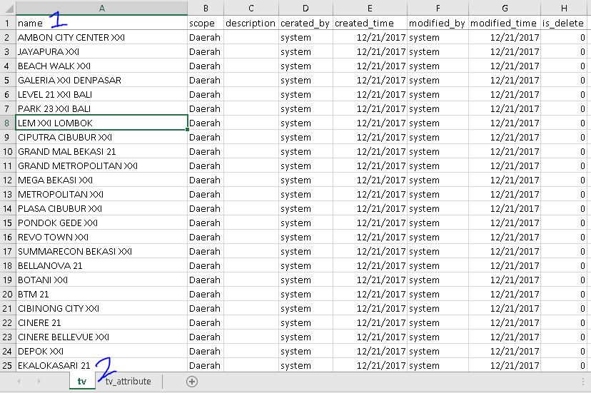 2. Nama sheet disamakan dengan nama tabel
