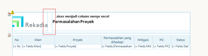 Dalam telerik reporting, report yang kita desain terkadang sudah rapih saat di tampilkan di report viewer namun saat kita download ke excel ternyata terkadang ada kolom yang saat di generate ke excel dia menjadi beberapa kolom yang di merge.